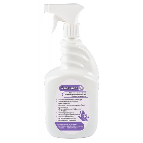 Дезинфицирующее средство «Авандез-А» используется в качестве кожного антисептика и для быстрой дезинфекции поверхностей. В качестве действующих веществ средство «Авандез-А» содержит спирт изопропиловый – 70,0%, 2-феноксиэтанол – 0,2%, алкилдиметилбензиламмоний хлорид – 0,05%, а также функциональные добавки, увлажняющие и ухаживающие за кожей компоненты.