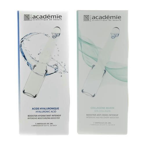 Академи Набор ампул: гиалуроновая кислота 2 мл х 7 шт + морской коллаген 2 мл х 7 шт (Academie, Ampoules)