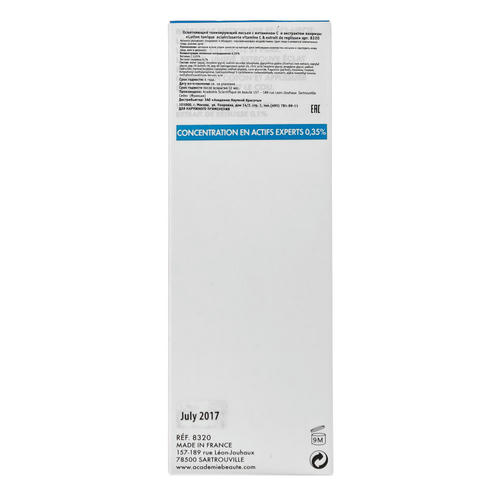 Главное свойство – завершение процесса очищения кожи и, соответственно, тонизирование. Лучший способ облегчить и успокоить кожный покров – использовать осветляющий тоник в ежедневном домашнем уходе. Благодаря активным компонентам, входящим в состав данного средства, ваша кожа «получает» мощный заряд энергии, который отражается на её структуре и цвете. Витамин С (0,25 %) выравнивает цвет лица, удаляет пигментационные пятна. Экстракт лакрицы (0,10 %) обволакивает кожные клетки, понижает уровень раздражимости. Вместе с этим средством обычно покупают косметику Academie из линейки White derm acte: Academie осветляющая увлажняющая эмульсия, Academie осветляющий увлажняющий крем, а также Academie осветляющий очищающий гель.