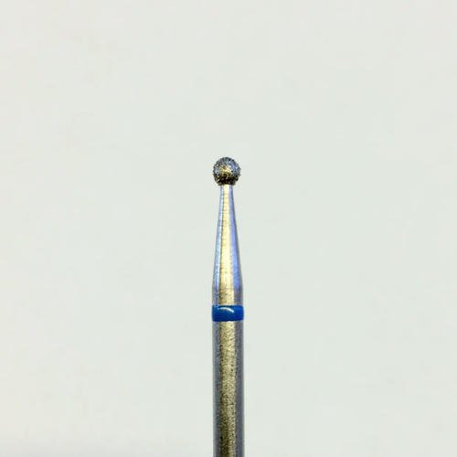 Фреза с искусственным алмазным напылением, форма шар, жесткость средняя. Максимальный диаметр рабочей части 2,1 мм. Используется для шлифовки боковых валиков и удаления остатков кутикулы.