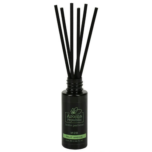Ароматический диффузор “№28 Fruit breeze”, 20 мл подарит яркий взрыв фруктово-ягодных ароматов сочной клубники, спелого банана и лесной земляники. Вы можете использовать ароматизаторы Aroma Republic в жилых помещениях, офисах, салонах красоты, магазинах. Это безопасный и экологически чистый способ ароматизации помещения. При производстве используется 100% швейцарское и французское сырье. Ароматы не содержат спирта, поэтому в несколько раз дольше работают и мягко отдают аромат в отличие от спиртовых. Интенсивность запаха можно регулировать количеством палочек,- чем их больше, тем сильнее аромат. Для лучшей ароматизации, рекомендуем чаще переворачивать палочки, желательно раз в сутки. Изделие рассчитано на помещение до 15 м2. Основные ноты: ягодно-фруктовые.