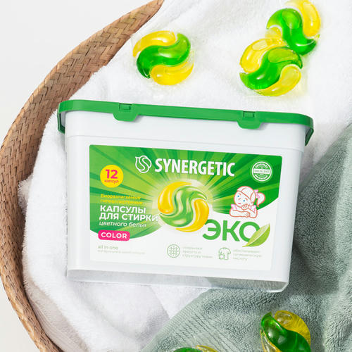 Биоразлагаемые концентрированные гипоаллергенные капсулы для стирки SYNERGETIC COLOR 12 штук