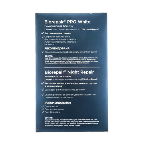 Зубная паста Biorepair Ночное восстановление имеет средний уровень абразивности (RDA) 50.