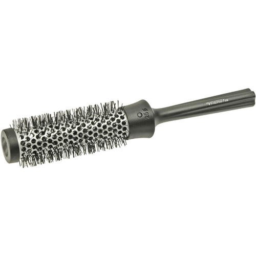Антистатический термобрашинг с дополнительным винтовым креплением рабочего цилиндра предназначен для интенсивного использования в салонах красоты. Рабочий цилиндр изготовлен из алюминия, щетина – нейлон.