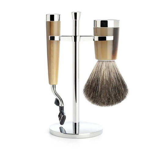 Бритвенный набор MUEHLE LISCIO, смола, цвет рога, натуральный барсучий ворс, бритва Mach3