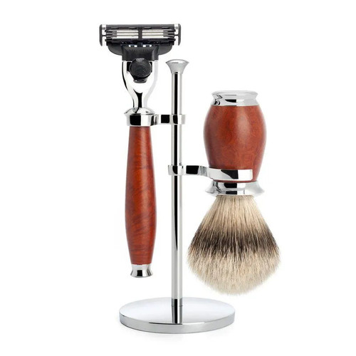 Бритвенный набор MUEHLE PURIST, бриар, барсучий ворс высшей категории Silvertip, бритва Mach3