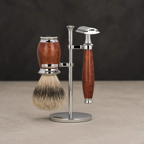 Бриар используется в производстве курительных трубок премиум класса, он отличается изысканностью и невероятной долговечностью. Помазок из бриара, дополненный хромированными деталями, станет украшением любой ванной комнаты.