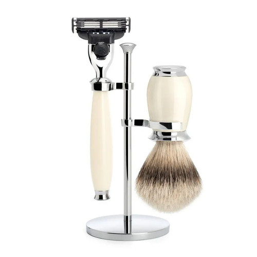 Бритвенный набор MUEHLE PURIST, смола, цвет слоновой кости, барсучий ворс высшей категории Silvertip, бритва Mach3