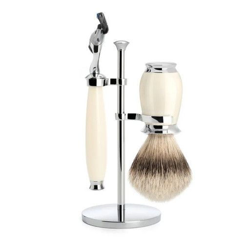 Бритвенный набор MUEHLE PURIST, смола, цвет слоновой кости, барсучий ворс высшей категории Silvertip, бритва Fusion