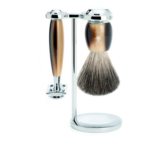 Бритвенный набор MUEHLE VIVO, смола, цвет рога, натуральный барсучий ворс, Т-образная бритва