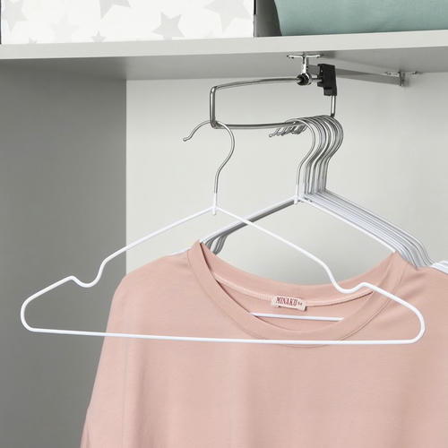Вешалка-плечики с антискользящим покрытием – незаменимая вещь в каждом шкафу. Специальное покрытие вешалки не даёт одежде соскальзывать. Классическая форма с перекладиной для брюк и выемкой для одежды с бретельками позволяет использовать вешалку практически для любой одежды. Тонкие металлические плечики не займут много места в вашем шкафу и помогут разместить всю одежду.