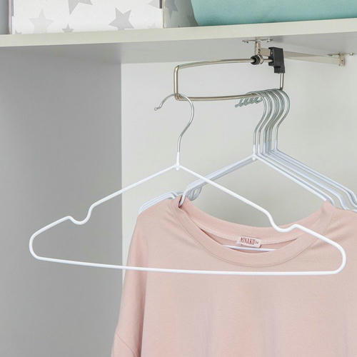 Вешалка-плечики с антискользящим покрытием – незаменимая вещь в каждом шкафу. Специальное покрытие вешалки не даёт одежде соскальзывать. Классическая форма с перекладиной для брюк и выемкой для одежды с бретельками позволяет использовать вешалку практически для любой одежды. Тонкие металлические плечики не займут много места в вашем шкафу и помогут разместить всю одежду.