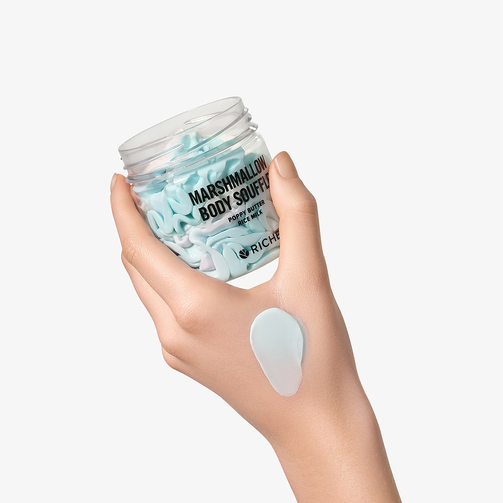 1. Нанеси баттер-суфле на чистую влажную кожу и насладись его взбитой консистенцией и приятным ароматом маршмеллоу.