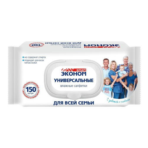 Влажные салфетки Эконом Smart для всей семьи, 150 шт