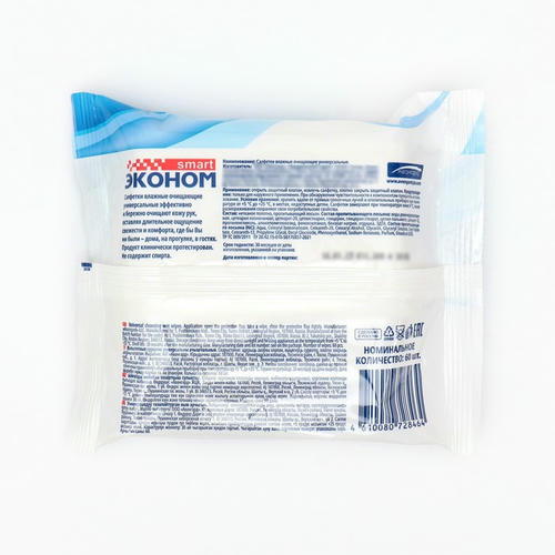 Влажные салфетки Эконом Smart очищающие, универсальные, 60 шт