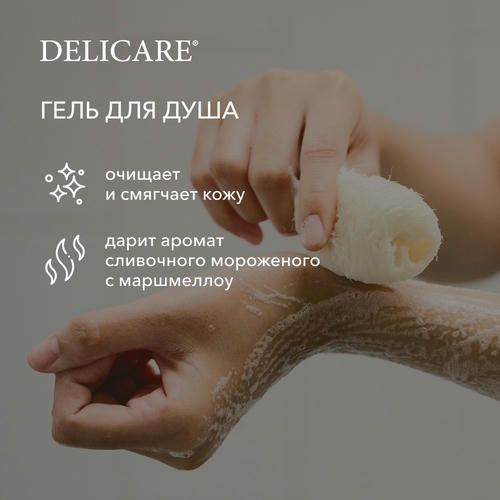 Нежный крем-гель для душа Delicare «Ice Cream» с пленительным ароматом сливочного мороженого с маршмеллоу бережно очищает и смягчает кожу. Натуральный экстракт увлажняет, успокаивает и придает коже упругость.