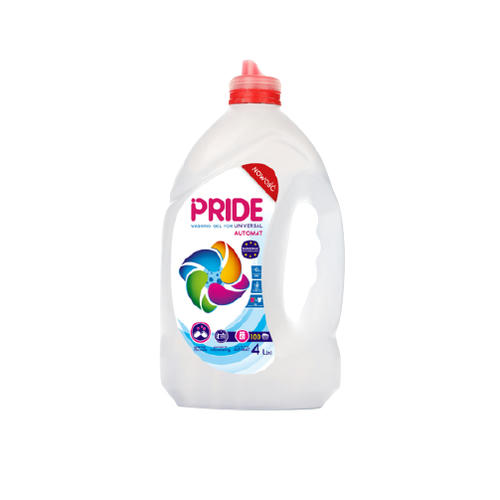 Улучшенная формула геля гарантирует высокое качество стирки белого и цветного белья, при этом гель действует более деликатно и эффективно работает уже при температуре 30°С. Гель PRIDE не содержит агрессивных красителей и не окрашивает белые вещи после стирки. Рекомендуемое количество стирок – 100 стирок/4 л геля для воды мягкой воды и среднего загрязнения белья