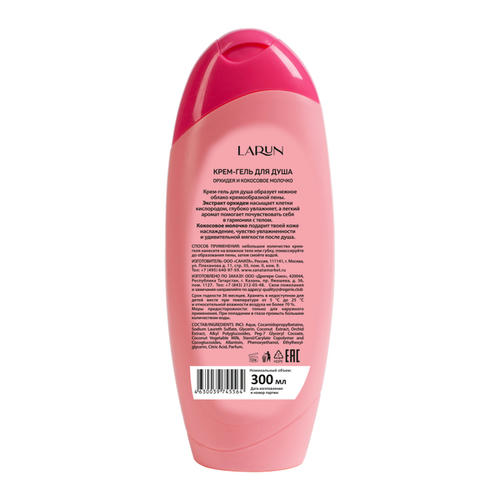 Способ применения: Небольшое количество геля нанесите на влажное тело или губку, помассируйте до образования пены, затем смойте водой