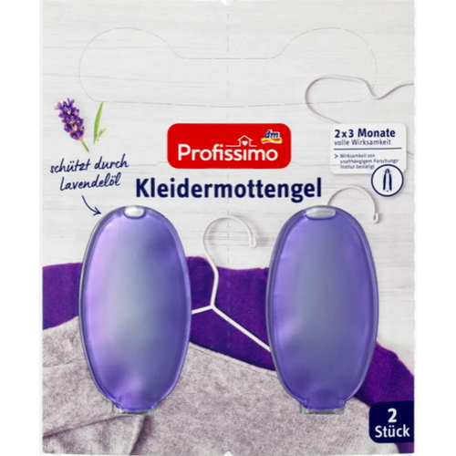 Свежий аромат геля от моли Profissimo с маслом лаванды надежно оградит от моли. Благодаря специально разработанной мембране и особому сочетанию активных ингредиентов аромат лаванды вытекает постоянно в небольших количествах. Поэтому нет утечки или залипания.