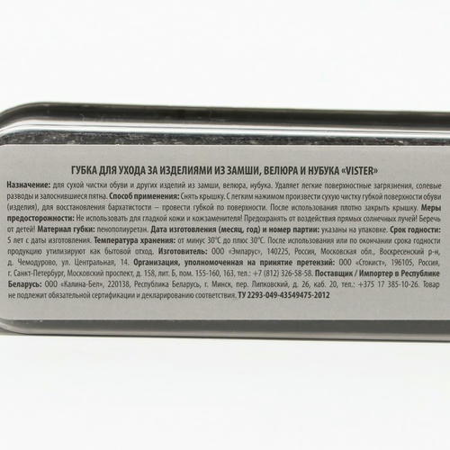 Губка предназначена для ухода за обувью и изделиями из замши, нубука, велюра.
