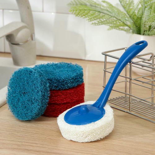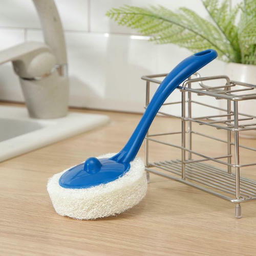 Губка для посуды абразивная с ручкой, 8×20 см, цвет МИКС