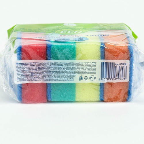 Набор губок кухонных «Коралл», 9,8x6,6x3 см, антибактериальные, 4 шт, цвет МИКС