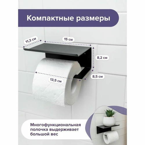 Держатель для туалетной бумаги с полочкой 6,5x16x11,5 см, алюминий