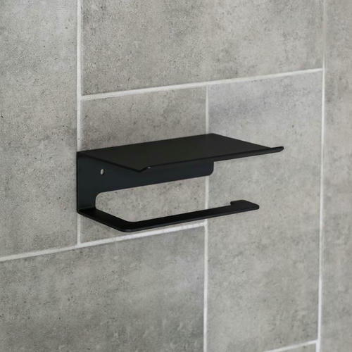 Держатель для туалетной бумаги с полочкой BAMBOO, 18x9,7x7,5 см, цвет чёрный