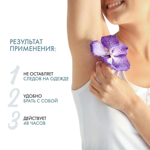 Дезодорант обеспечивает длительную защиту. Эффективно защищает от избыточного потоотделения. Нейтрализует неприятные запахи.