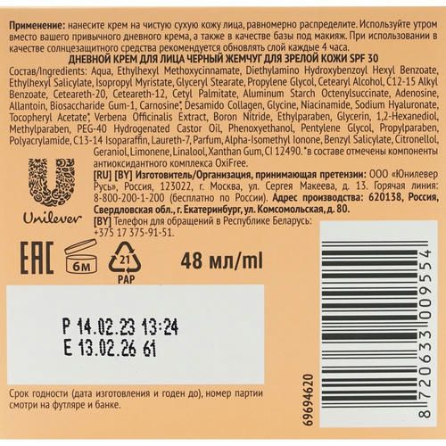 Дневной крем для лица Черный Жемчуг Предотвращает фотостарение кожи SPF 30 , 46мл