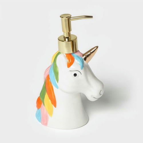 Керамический дозатор для жидкого мыла «Единорог» станет стильным дополнением вашей ванной комнаты или кухни. Такой аксессуар очень удобен в использовании. Просто перелейте жидкое мыло или моющее средство в диспенсер, а когда понадобиться, выдавите необходимое количество лёгким нажатием на помпу дозатора.