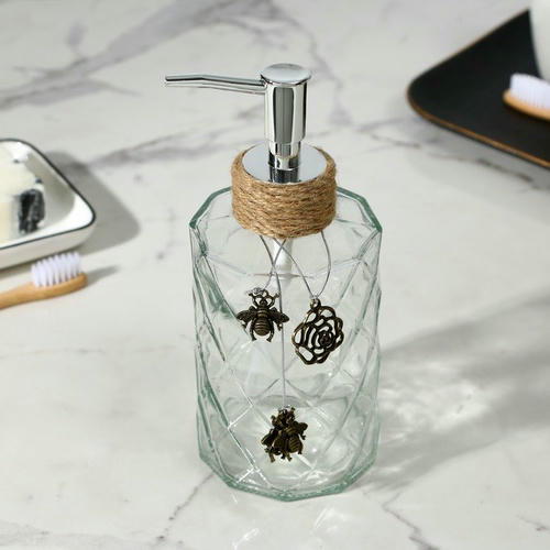 Дозатора для мыла объемом 330 мл., диспенсер выполнен из качественного стекла. Незаменимый аксессуар для тех, кто ценит комфорт и предпочитает экономно использовать жидкое мыло.