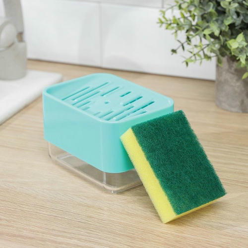 Дозатор для моющего средства с подставкой для губки, 250 мл, губка в комплекте, цвет синий