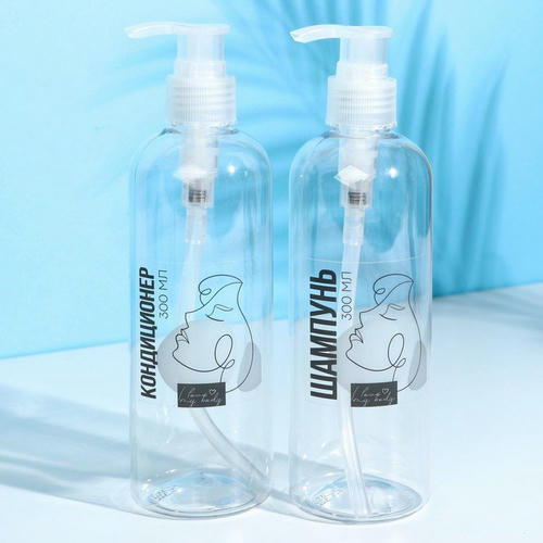 Дозатор для шампуня и кондиционера I love my body, 300 мл, набор 2 шт