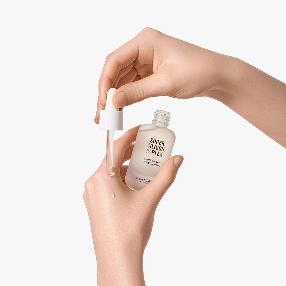 Распредели 2-3 капли масла по кончикам волос, действуя строго сверху вниз. Не смывай. Для лучшего обволакивания волос силиконами можешь воспользоваться любым термоинструментом.