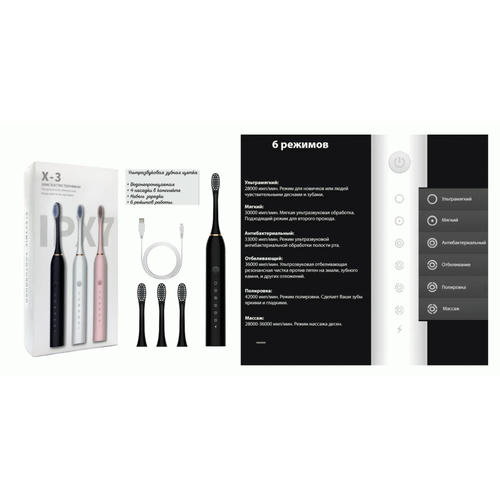 Зубная щетка электрическая 4 сменные насадки, 6 режимов, кабель USB