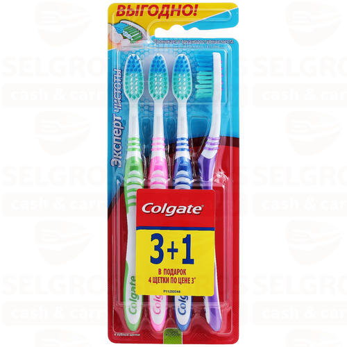 Уникальная зубная щетка COLGATE эксперт чистоты эффективно чистит и проникает в труднодоступные места. С помощью выступающих кончиков щетинок она интенсивно очищает задние коренные зубы, наиболее подверженные кариесу. Мягкая резиновая подушечка для чистки языка удаляет бактерии, вызывающие неприятный запах изо рта.