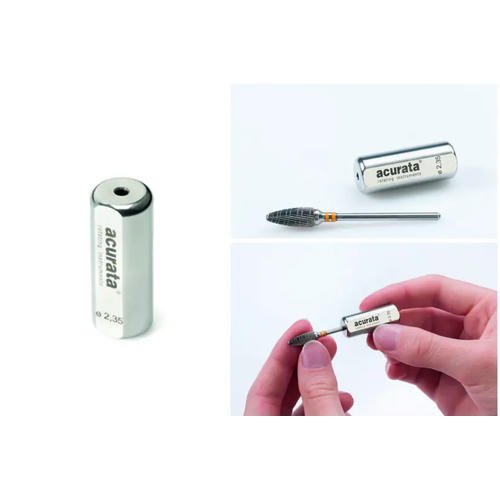 Инструмент для проверки центровки фрез. Погнутые фрезы портят аппарат, создает шум, нагревание и вибрацию ручки аппарата при работе. Что неизбежно приводит к поломке микромотора._Поэтому очень важно работать идеально ровной фрезой, без повреждений.Чтобы проверить центровку фрезы: вставьте черенок фрезы в отверстие в инструменте. Фреза должна свободно входить и выходить до самой головки без застревания.