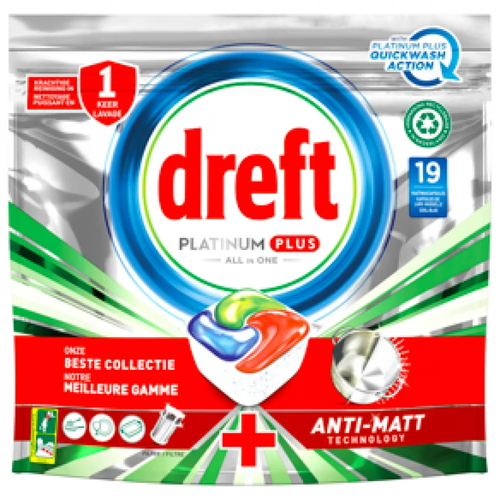 Таблетки для посудомоечных машин Dreft Platinum Plus Все в одном обеспечивают хорошее очищение и помогают удалить даже налет, возвращая посуде ее первоначальный блеск.