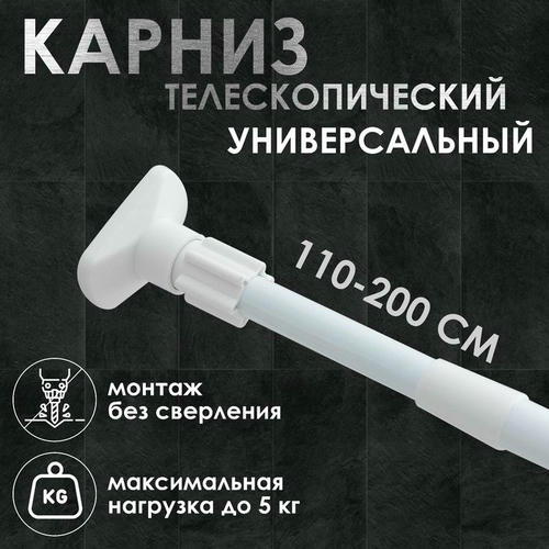 Усиленный металлический карниз работает по следующему принципу. Вы устанавливаете его одной стороной в стену и раскручиваете с другой. Так он увеличивается до 200 см. После того как второй край упрётся, следует сделать ещё 2–3 оборота для более надёжной фиксации. Затем просто навесьте штору с крючками и распрямите её по всей длине.