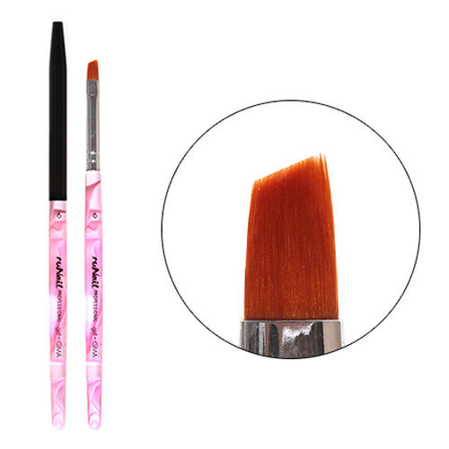 Плоская скошенная кисть из синтетического волокна (токолон) для работы с гелем и френч-дизайна. Подходит для выкладки, выравнивания и моделирования геля, акрил-геля и УФ-геля.