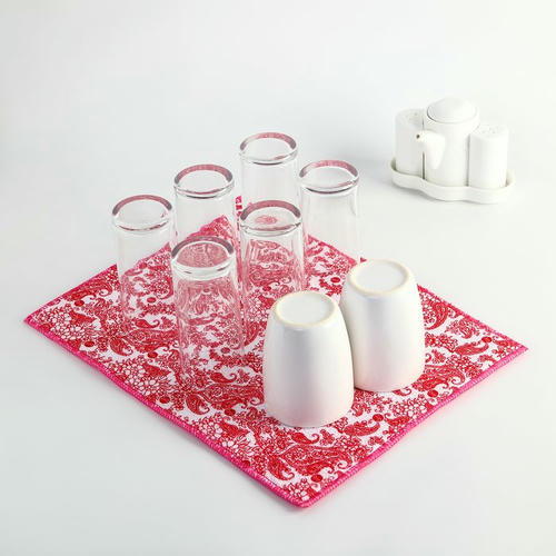• микрофибра быстро и эффективно впитывает лишнюю влагу, препятствуя распространению болезнетворных микроорганизмов и порче посуды;