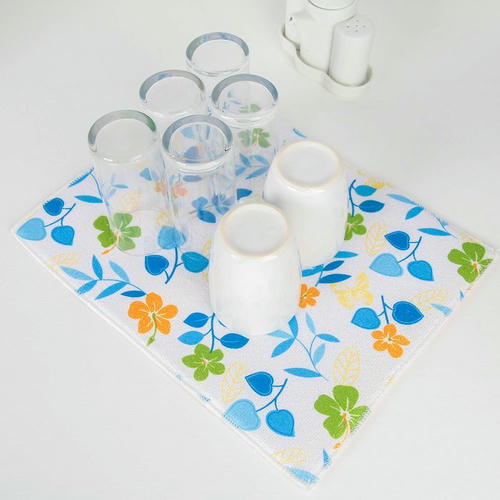- микрофибра быстро и эффективно впитывает лишнюю влагу, препятствуя распространению болезнетворных микроорганизмов и порче посуды;