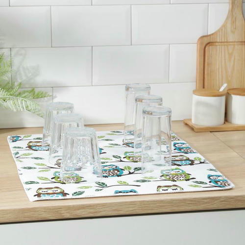 Коврик для сушки посуды Доляна «Совы», 38x51 см, микрофибра