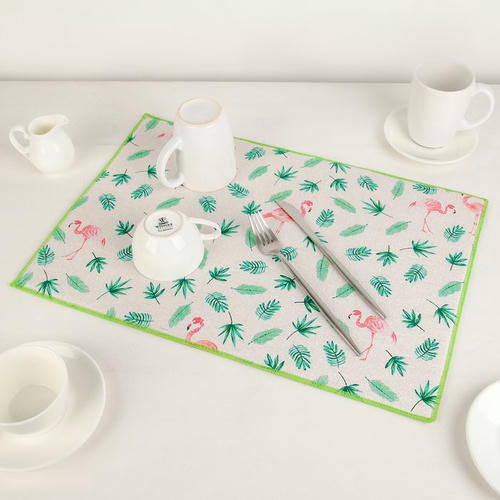 Коврик для сушки посуды Доляна «Фламинго», 25x40 см, лён