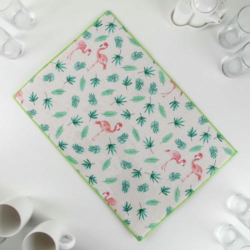 Коврик для сушки посуды Доляна «Фламинго», 34x50 см, лён