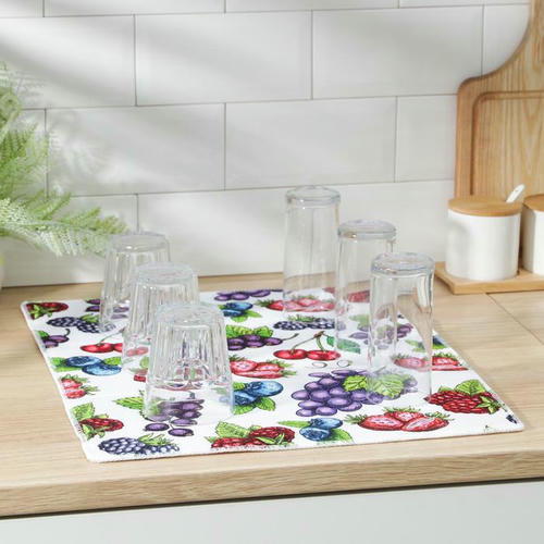 Коврик для сушки посуды Доляна «Ягоды», 38x51 см, микрофибра