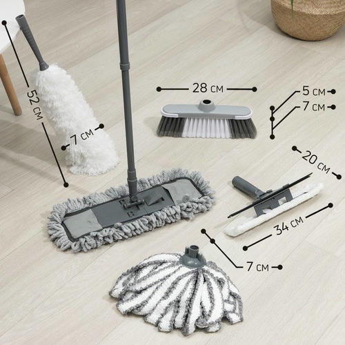Комплект для уборки Raccoon «Универсальный», 6 предметов: насадка моп, флаундер для швабры с насадкой, метла, окномойка, щётка для пыли и черенок
