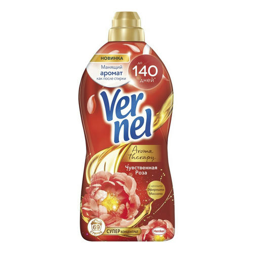Концентрированный кондиционер для белья Vernel Ароматерапия Чувственная роза 870 мл (34 стирок) подарит Вашему белью не только невероятную мягкость, но и чувственный аромат розы, а благодаря специальным аромакапсулам в составе кондиционер для стирки Vernel позволит наслаждаться интенсивным ароматом белья до 140 дней. Кондиционер для белья Vernel Ароматерапия также содержит в составе эфирные масла, которые подарят Вам вдохновение для души и тела