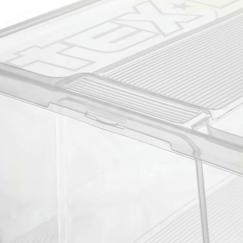 Контейнер с крышкой Tex, 38х28х14 см, 10 л – вместительный ящик для хранения, который можно использовать для размещения игрушек, сезонных вещей, спортинвентаря и других вещей. Плотная крышка накрывает ящик без защелкивания и помогает защитить вещи от пыли, грязи и влаги. В закрытом виде ящики надежно устанавливаются друг на друга, благодаря плоской форме крышки. Прозрачный пластик позволяет видеть, что хранится внутри.